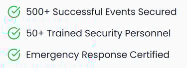 Licensed security professionals with certifications in safety protocols and crowd management.